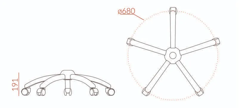 Base giratória em aço com acabamento cromado, em formato piramidal. Com Rodízios Duplos Anti Risco