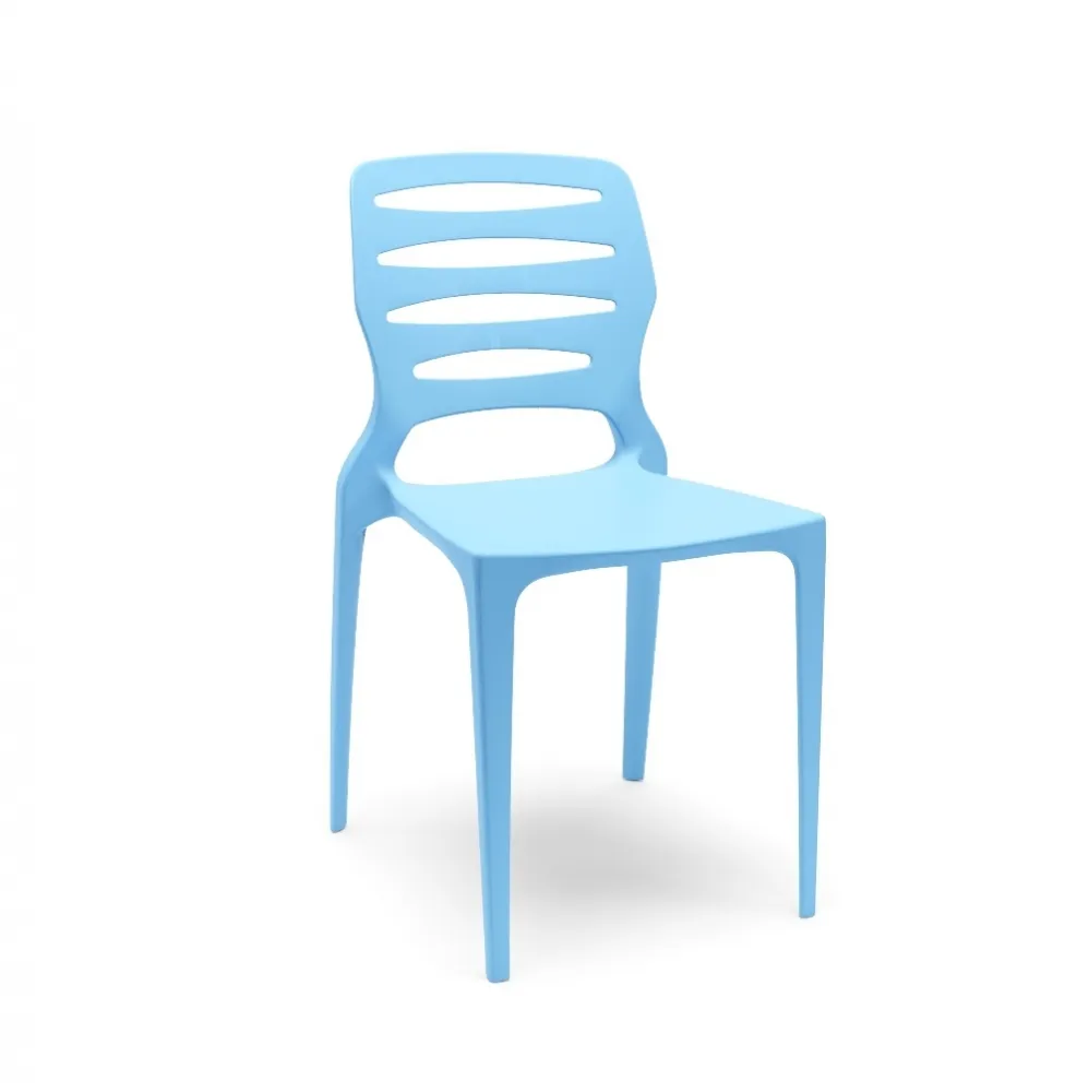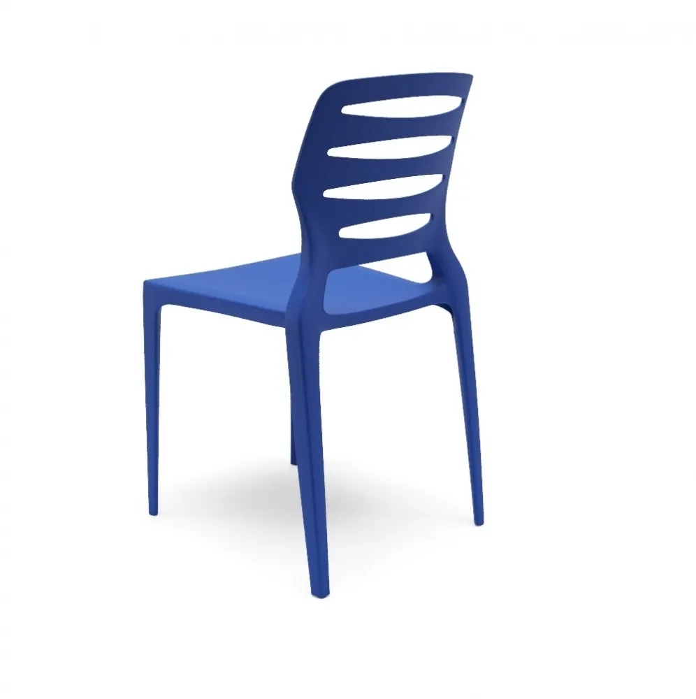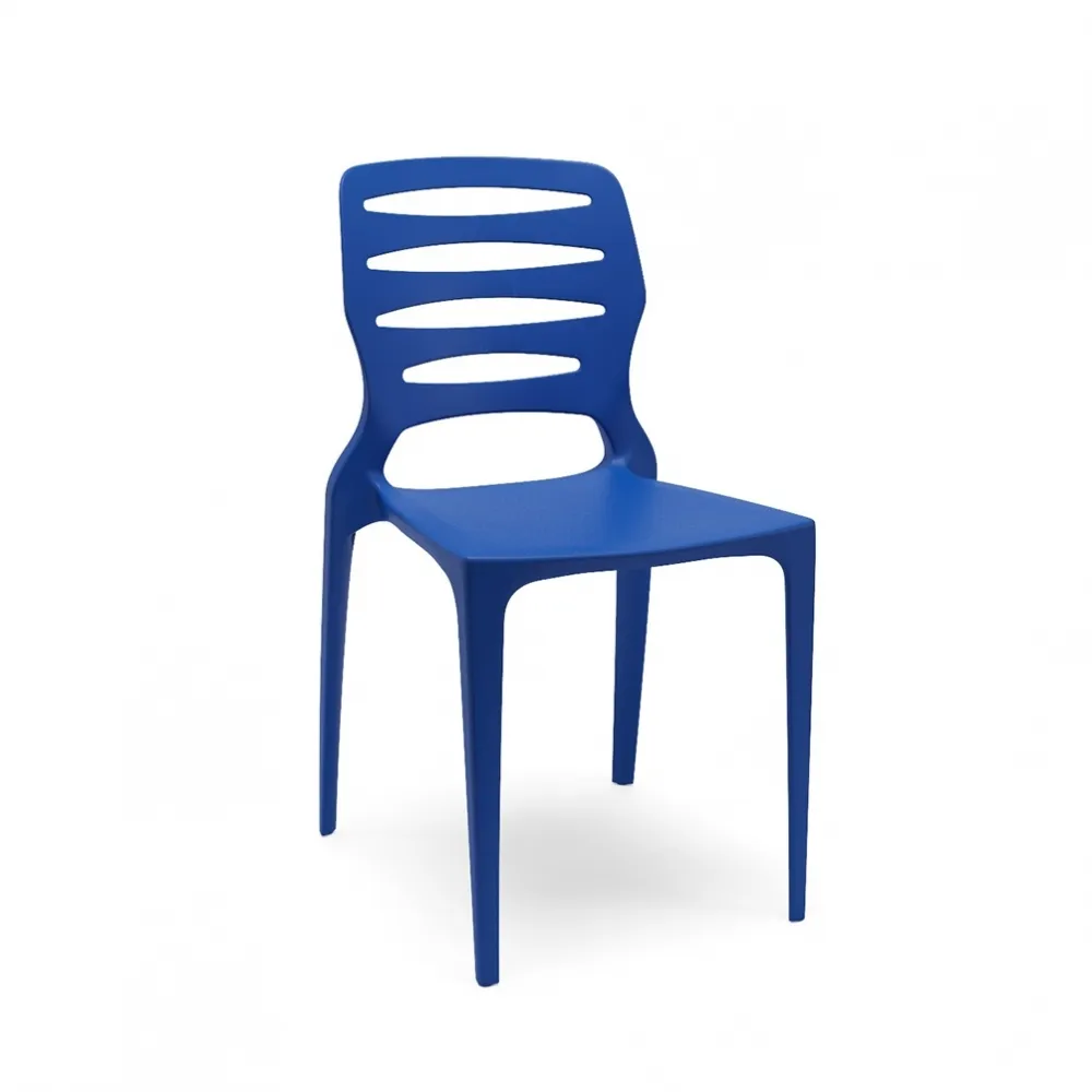 Cadeira Empilhável Ergoplax Slim Cor Azul Estrutura Fixa 4 Pés em Aço na Cor Preta