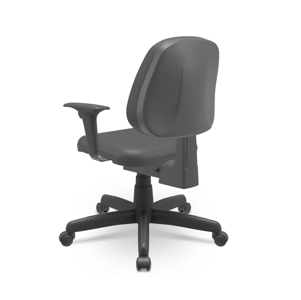 Poltrona multi regulável certificada com regulagens de altura e inclinação do encosto, através do mecanismo back system. Assento e encosto em espuma injetada com braços com regulagem de altura. Revestimento disponível em Couro Ecológico em diversas opções de cores.