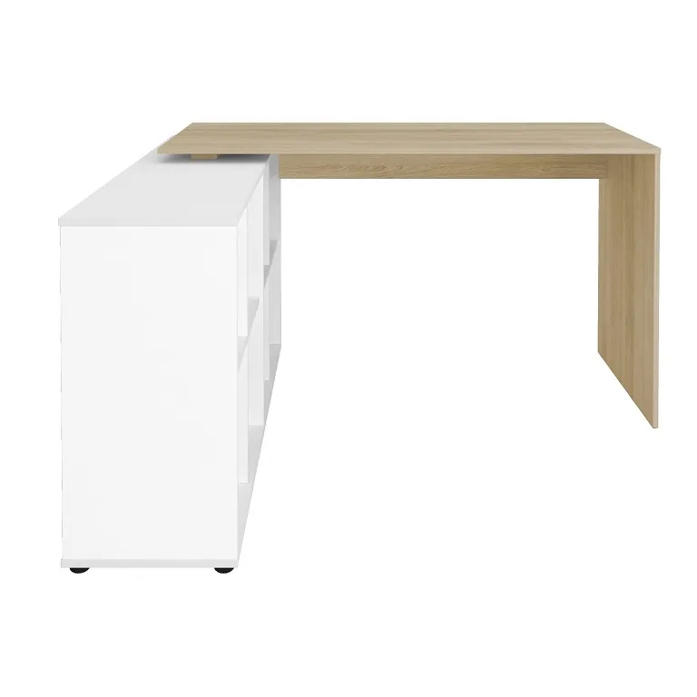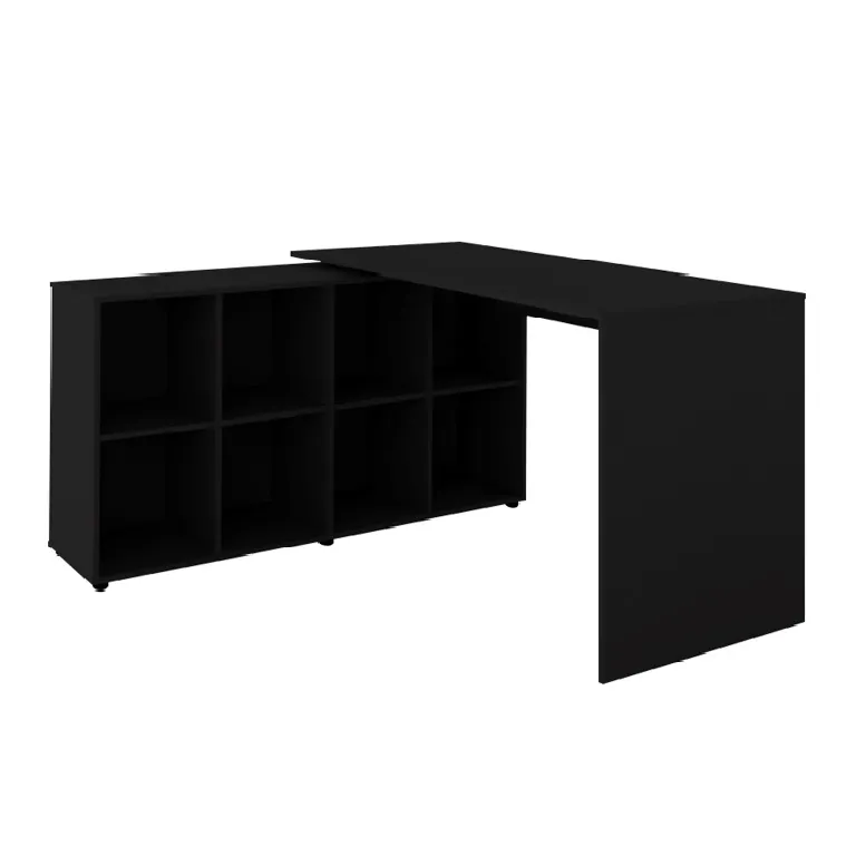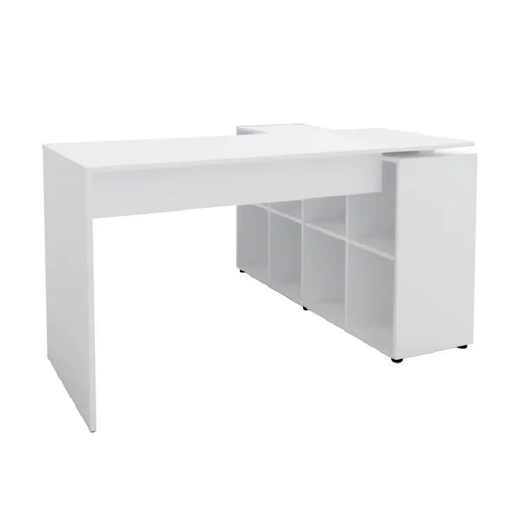 Estação de trabalho com balcão conjugado. Balcão com 8 nichos, que permite montagem à esquerda ou a direita da mesa. A estacão Nero está disponível nas cores Branca, Preta, Ipê com preto ou Carvalho com Branco. Valor para a cor Branca, consulte valores para as demais cores.