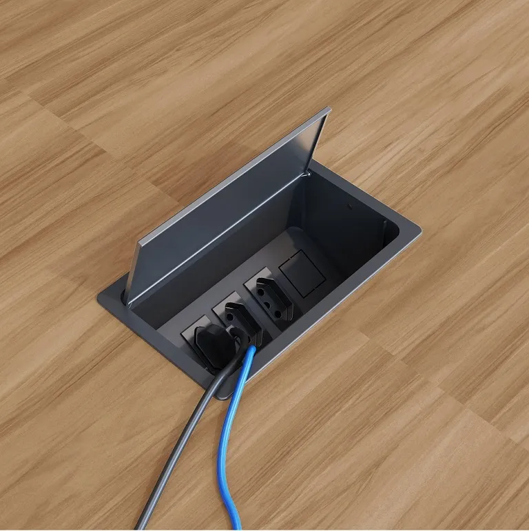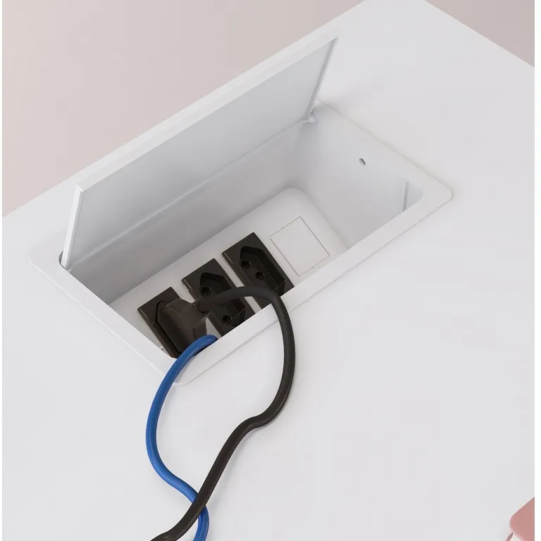 Obs.: Caixas de tomada são brancas quando o tampo for: Branco, Nature Farm, Carvalho Treviso. Serão pretas quando o tampo for: Preto, Nogal Sevilha, Manhattan, Louro Preto ou Ceramik.