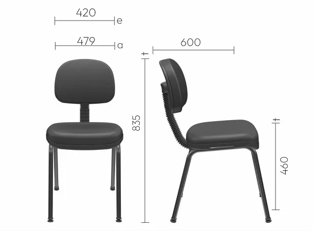 Conjunto com 4 unidades de cadeira modelo Secretária. Modelo com base fixa 4 pés em aço com pintura epoxi pó na cor preta. Revestimento em tecido J.S em diversas opções de cores a sua escolha .