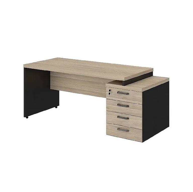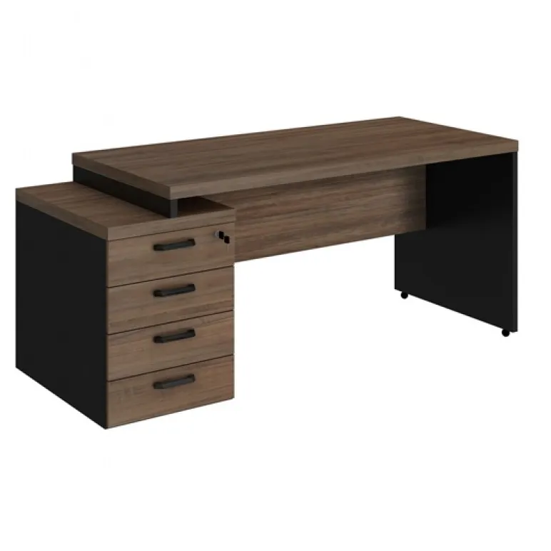 Mesa com tampo com 40mm e 4 gavetas laterais . Tampo com 1,50 e extensão total de 1.72m. Profundidade de 0,70m. Várias combinações de cores a sua escolha. Valores para as cores Cinza Sagrado, Nogal, Málaga e Macadamia. Consulte valores para as demais opções de cores.