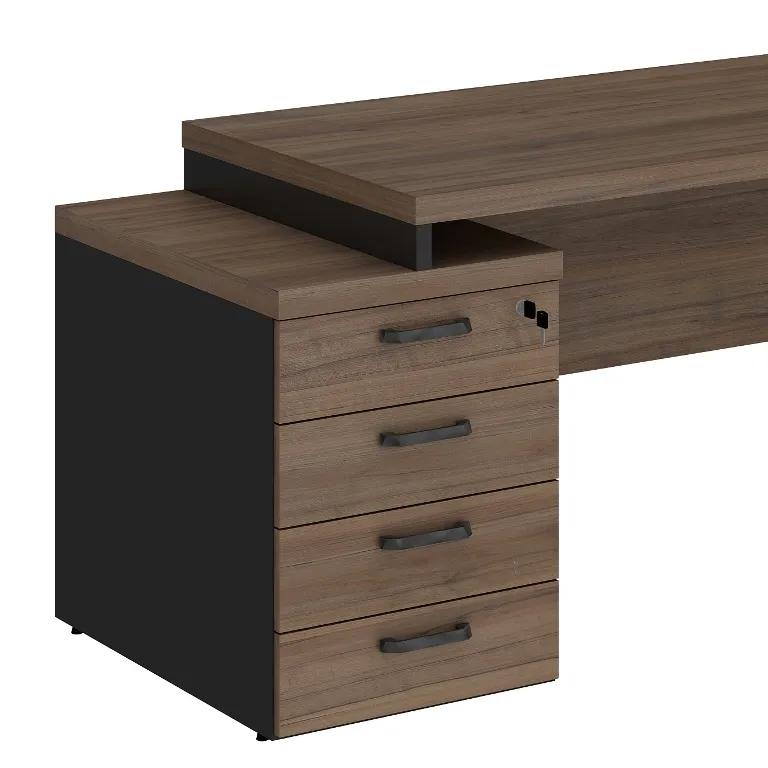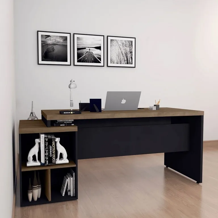 * 4 Gavetas com corrediças metálicas, que podem ser montadas a direita ou esquerda da mesa;