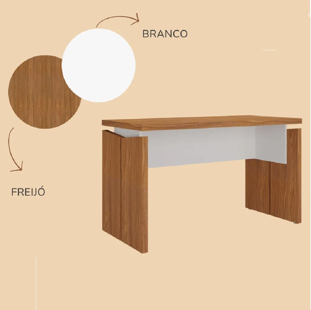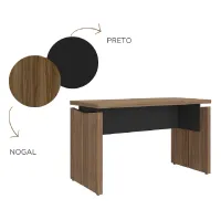 Mesa operacional com tampo e pés duplos em tamburato 37mm de espessura. Mesa com largura de 1,25m e profundidade de 0,60cms. Disponível nas seguintes composições de cores: Nogal com preto ou Freijó com Branco.
