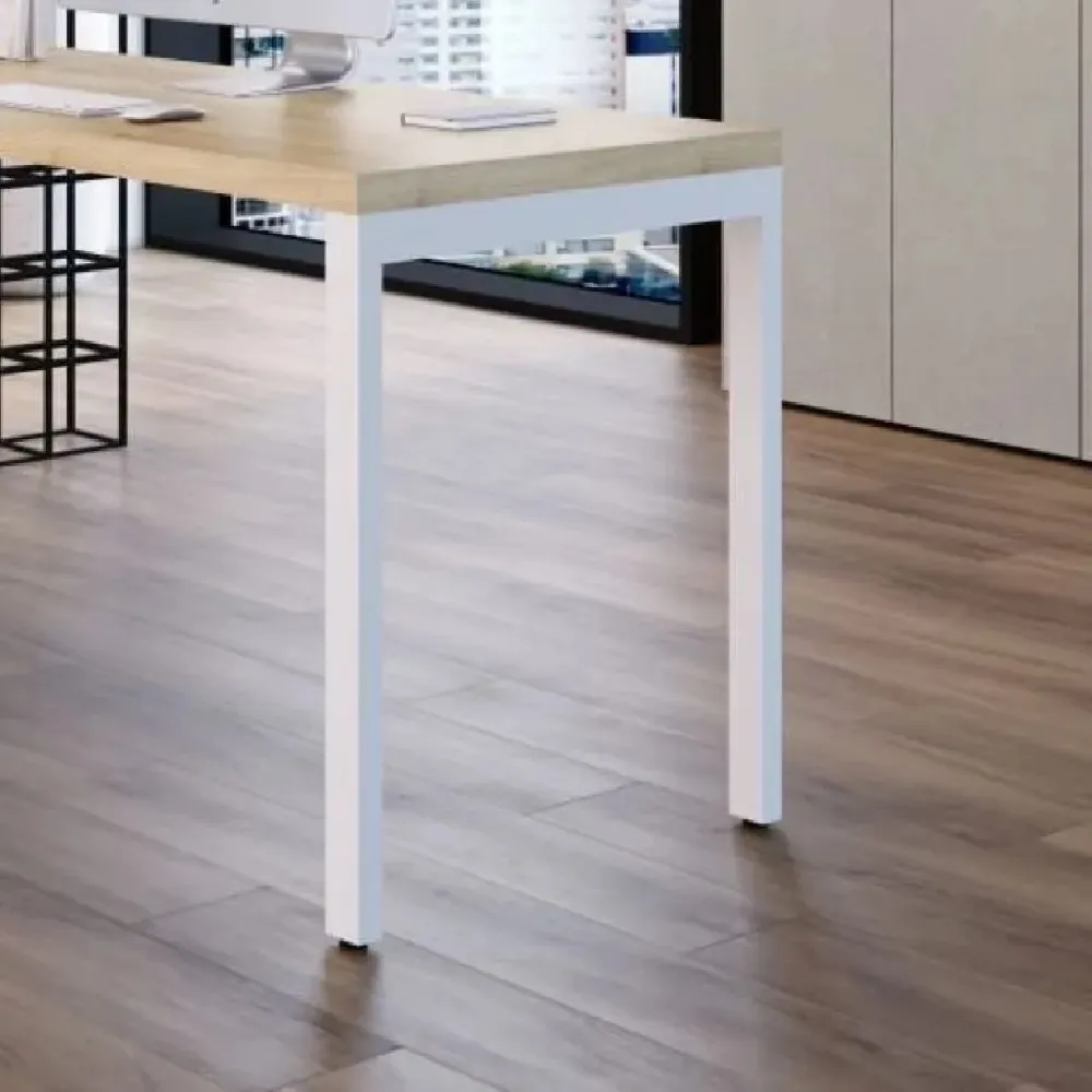 Mesa com pés em aço e tampo em 25mm confeccionado em 100% MDF. O tampo da mesa está disponível em diversas opções de cores. Pés da mesa em aço com acabamento nas cores: Preto ou branco.