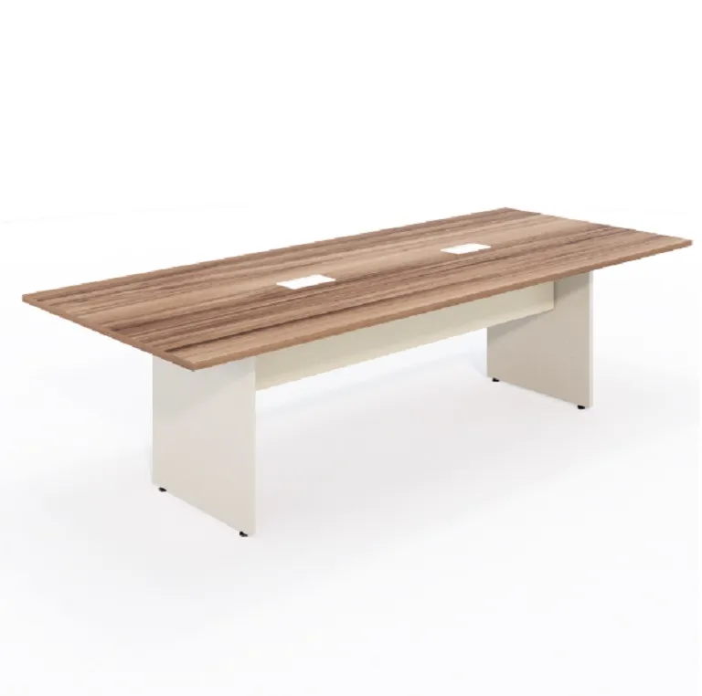 Mesa de reunião em formato retangular com largura de 2,70 metros e profundidade de 1,10m.Já incluso 2 caixas de conectividade com 6 tomadas eletricas. Modelo disponível nas cores: Branca, preta, argila ou cinza.