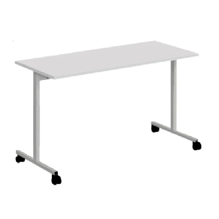 Mesa com 1,50m de largura; perfeita para uso em treinamento ou reuniões, devido a facilidade de seu tampo articulável e locomoção, graças ao conjunto de 4 rodízios. Tampo da mesa disponível em 4 opções de cores e cores para a estrutura metálica.