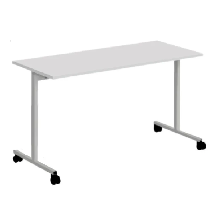 Mesa com 1,60m de largura; perfeita para uso em treinamento ou reuniões, devido a facilidade de seu tampo articulável e locomoção, graças ao conjunto de 4 rodízios. Tampo da mesa disponível em 4 opções de cores e cores para a estrutura metálica.