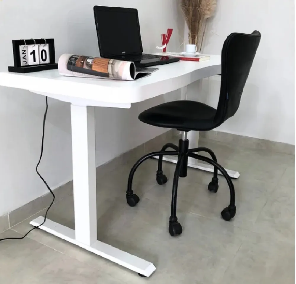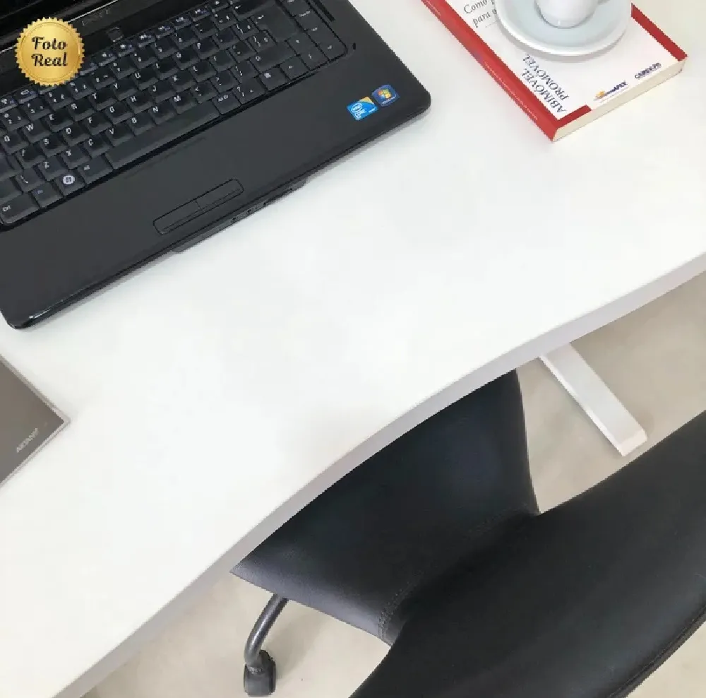 * Pé em Aço com regulagens de altura, com pintura na cor Branca. Estrutura robusta e durável, garantindo estabilidade e longa vida útil à mesa;