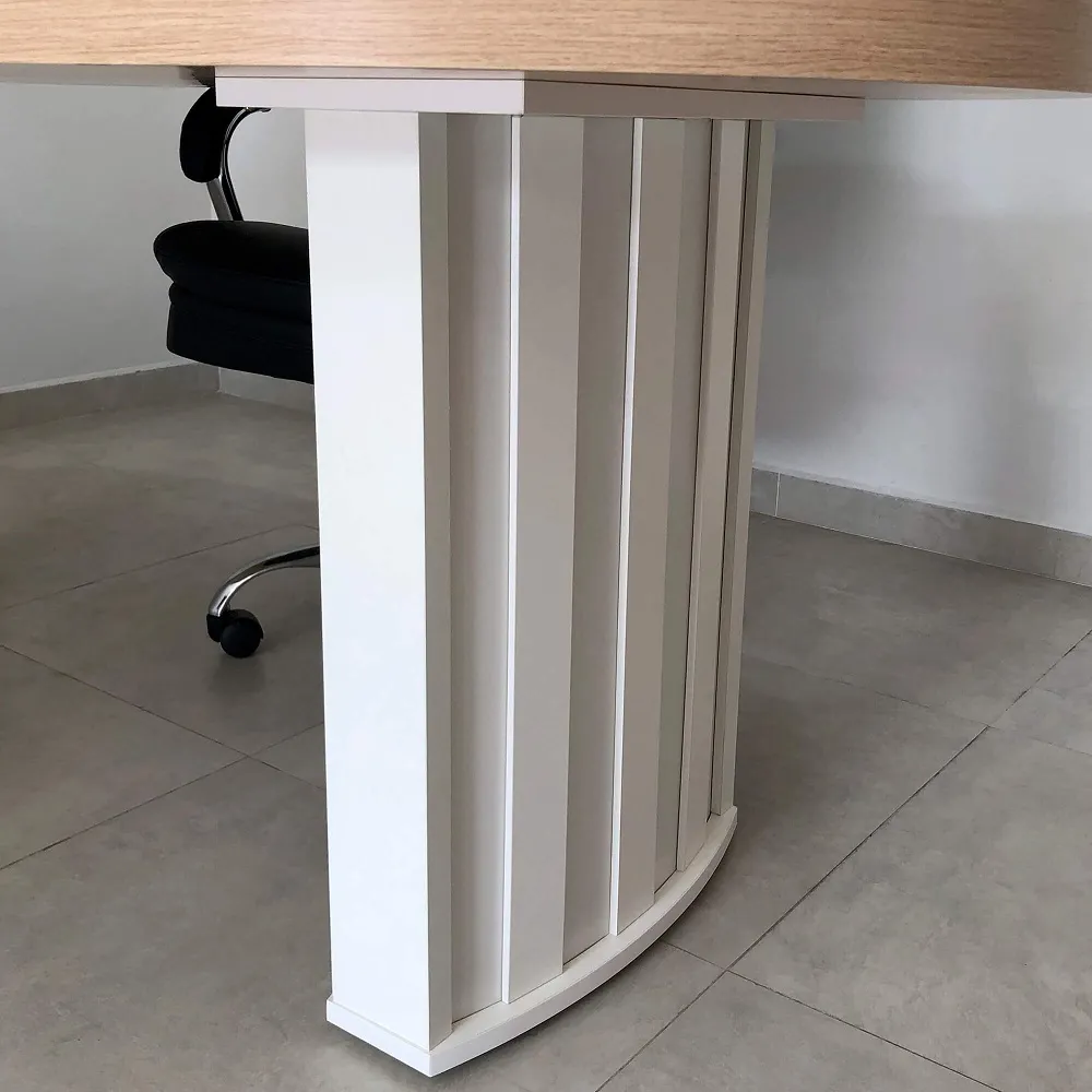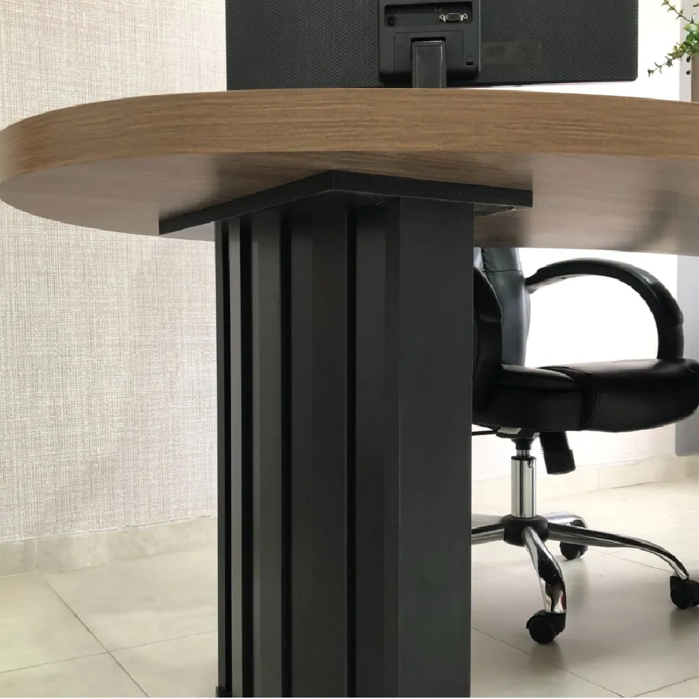 * Tampo com design ergonômico, o tampo curvo oferece o encaixe ideal para o corpo, promovendo conforto e alinhamento durante a jornada de trabalho.