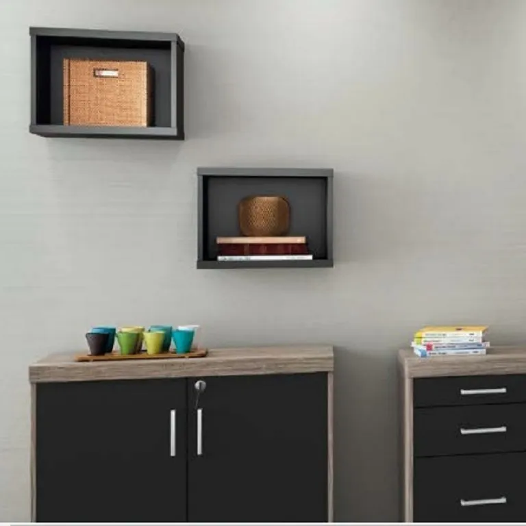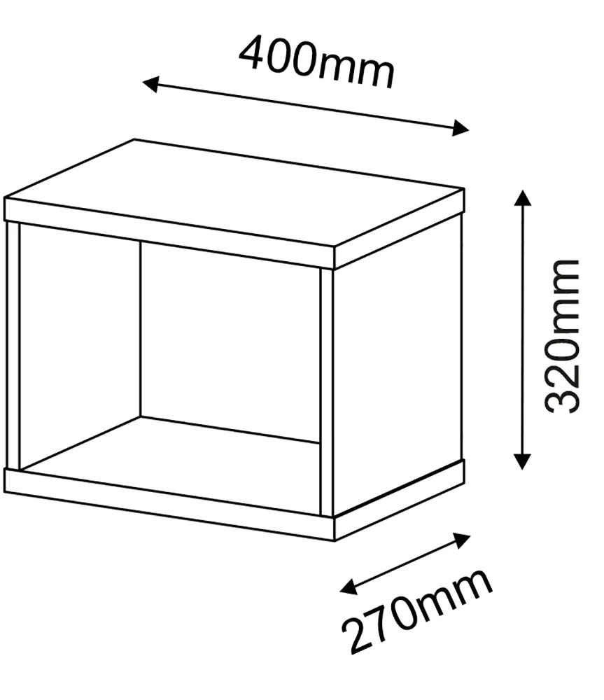 Nicho aéreo em MDFBP 25 e15mm. Acompanha ferragens para fixação em parede. Disponível na cor Terano, Grigio ou Marsala.