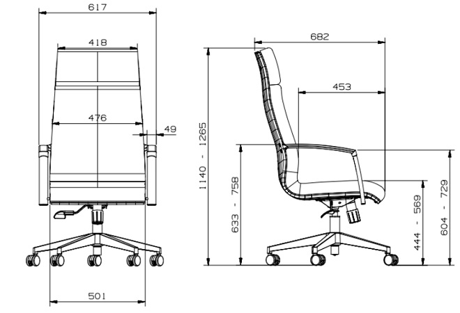 Poltrona Presidente com detalhes de costuras duplas no assento e encosto. Base giratória modelo piramidal cor Preta e braços em aço com acabamento em pintura Preta com apóia braços em PU. Mecanismo de relax e regulagem de altura à gás. Revestimento em Couro Eco em várias opções de cores.